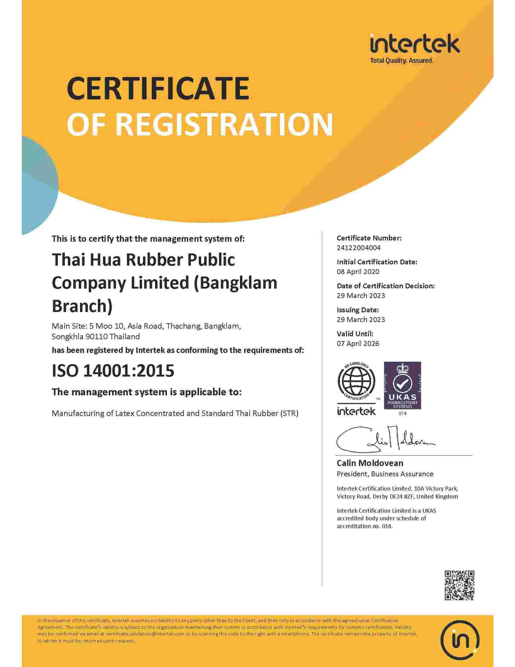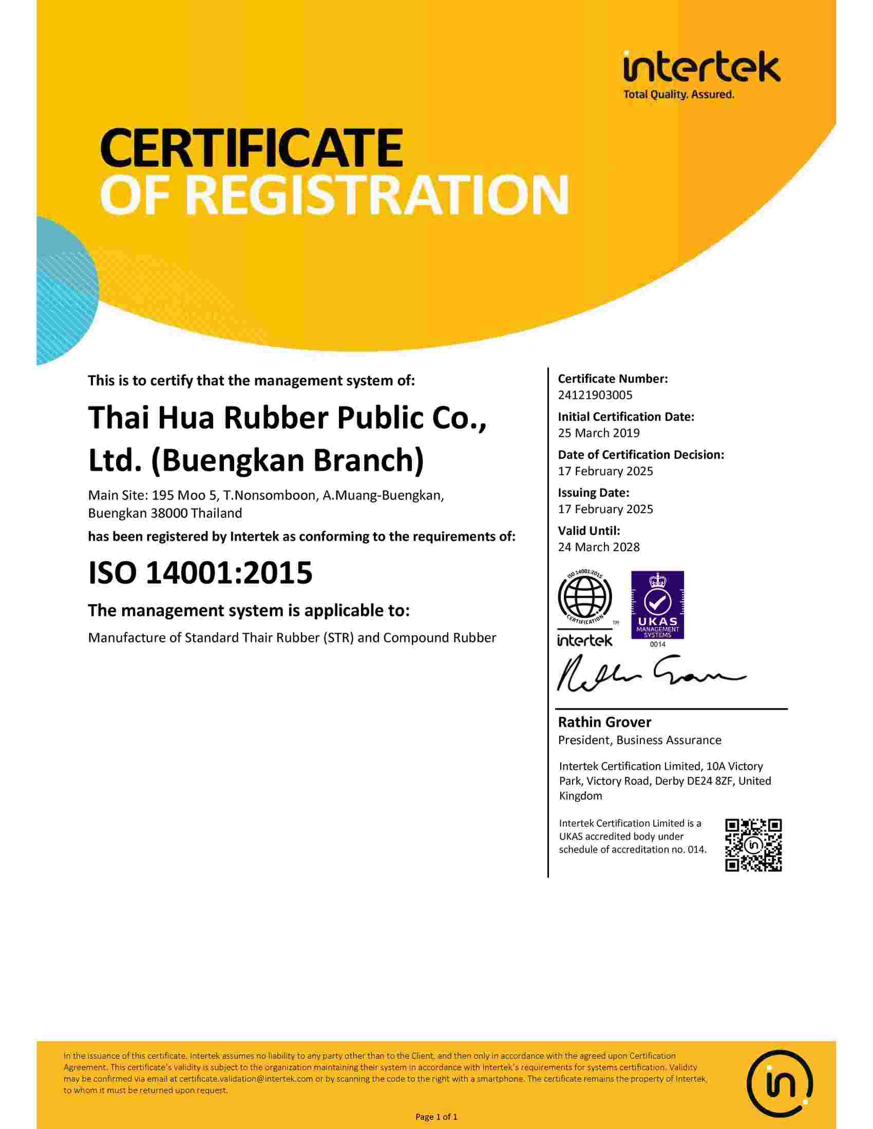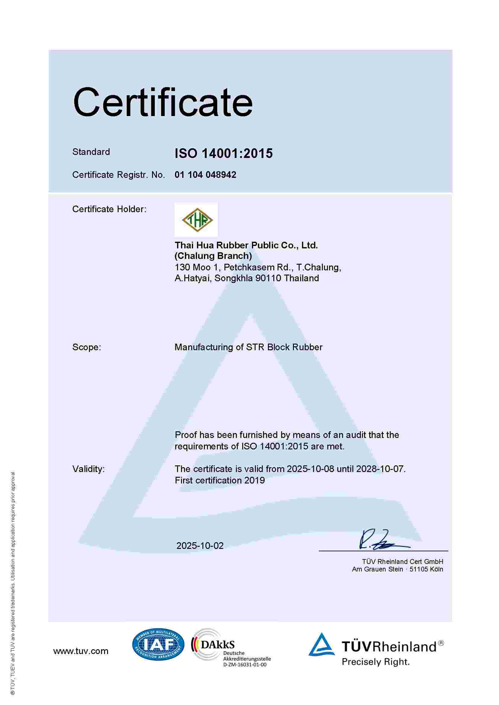 | STR | Chalung(ISO 14001:2015) | BN | 07/10/2028 | View |