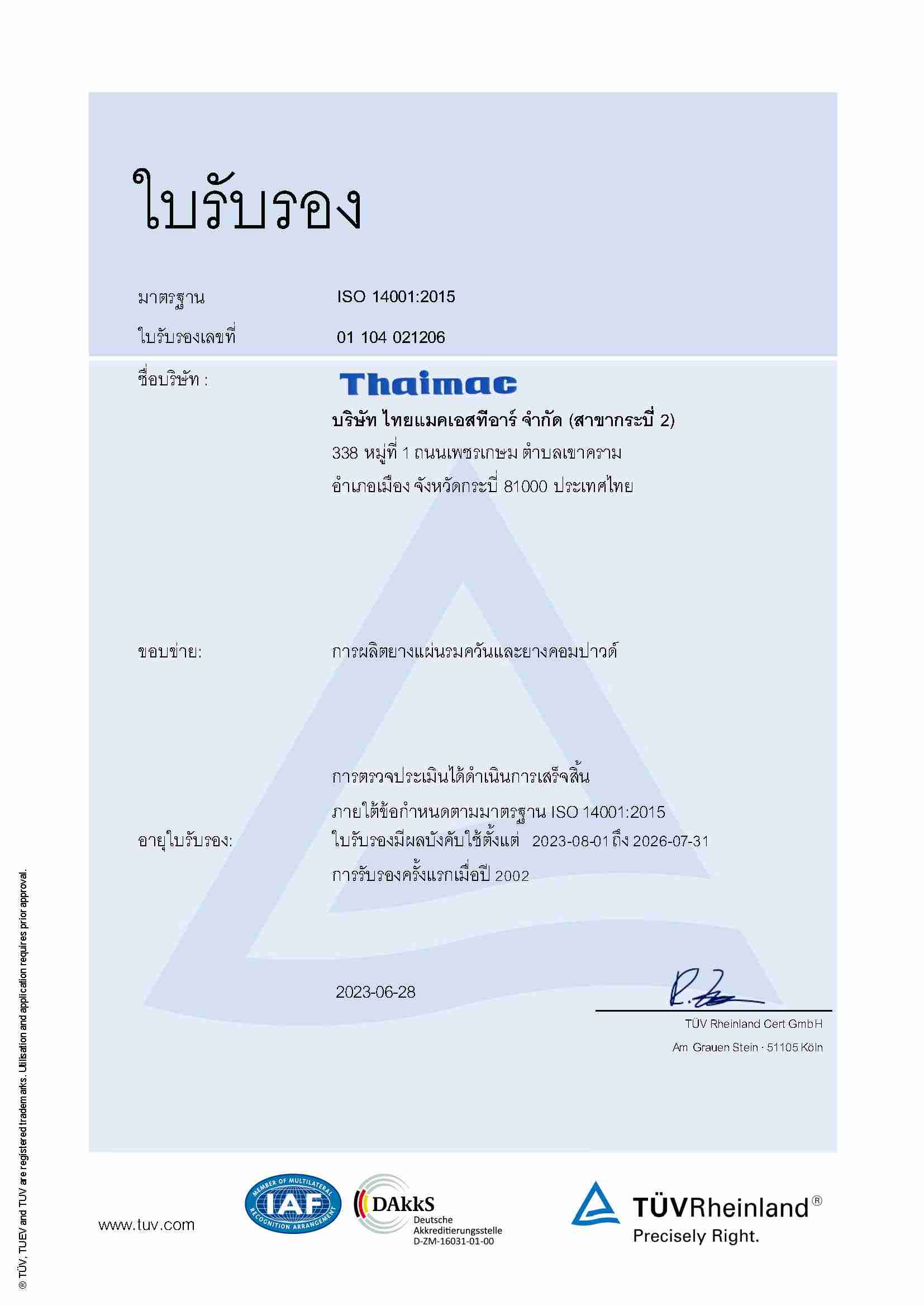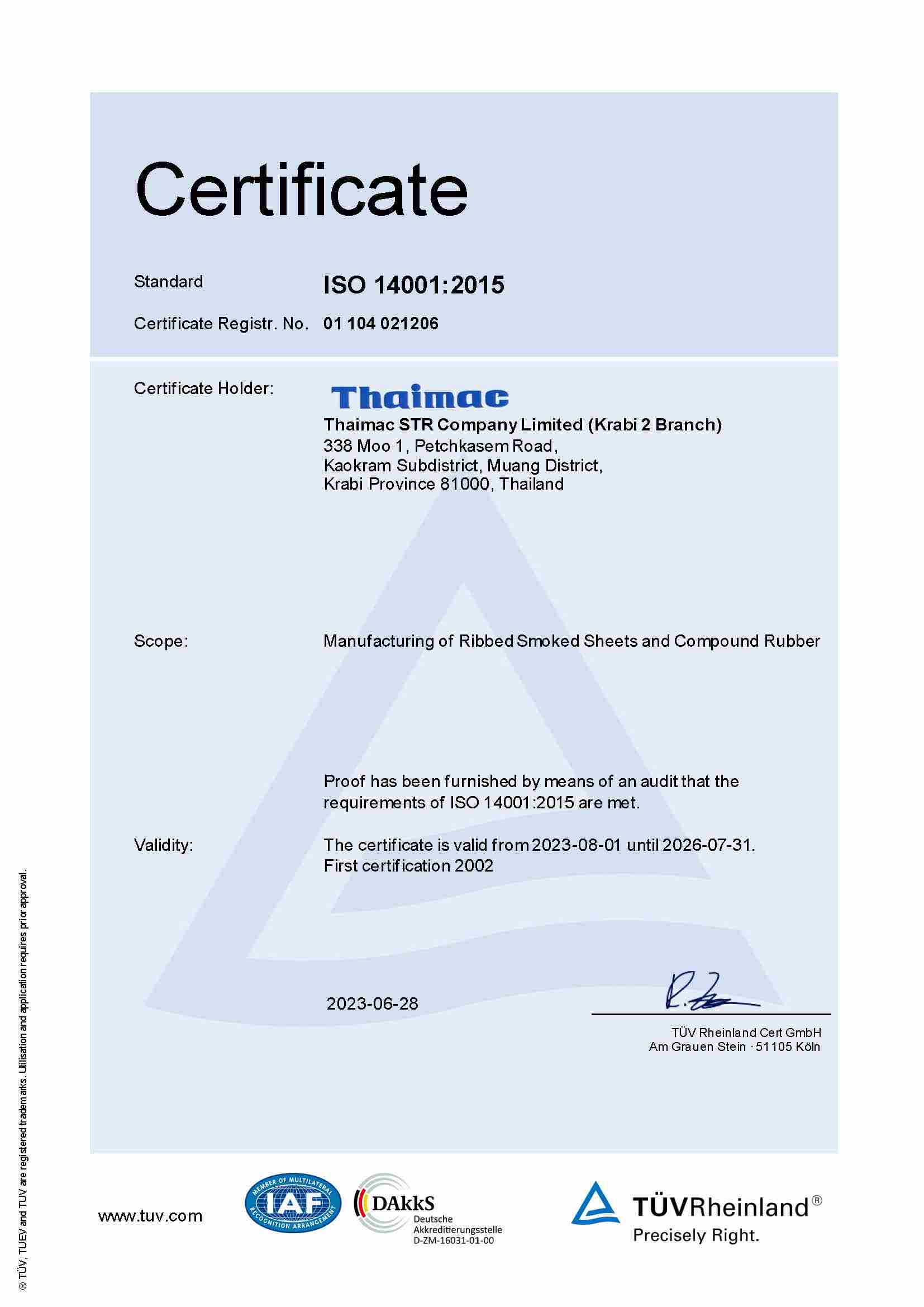 | RSS | ThaiMac (Krabi 2)(ISO 14001:2015) | KL | 31/07/2026 | View | View |
