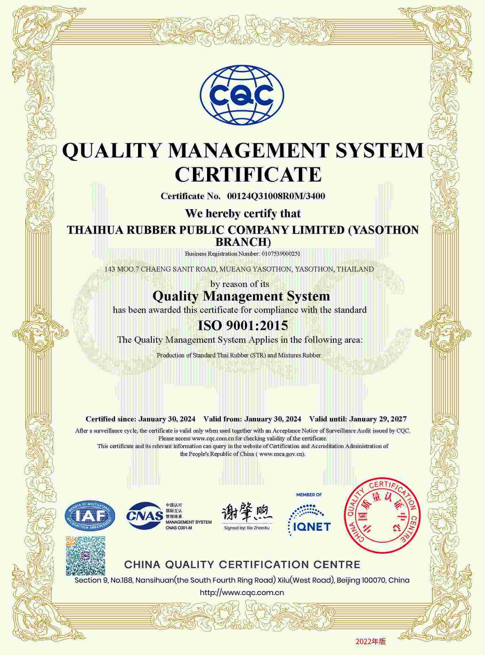 | STR | Yasothon(ISO 9001:2015) | BN3 | 29/01/2027 | View |