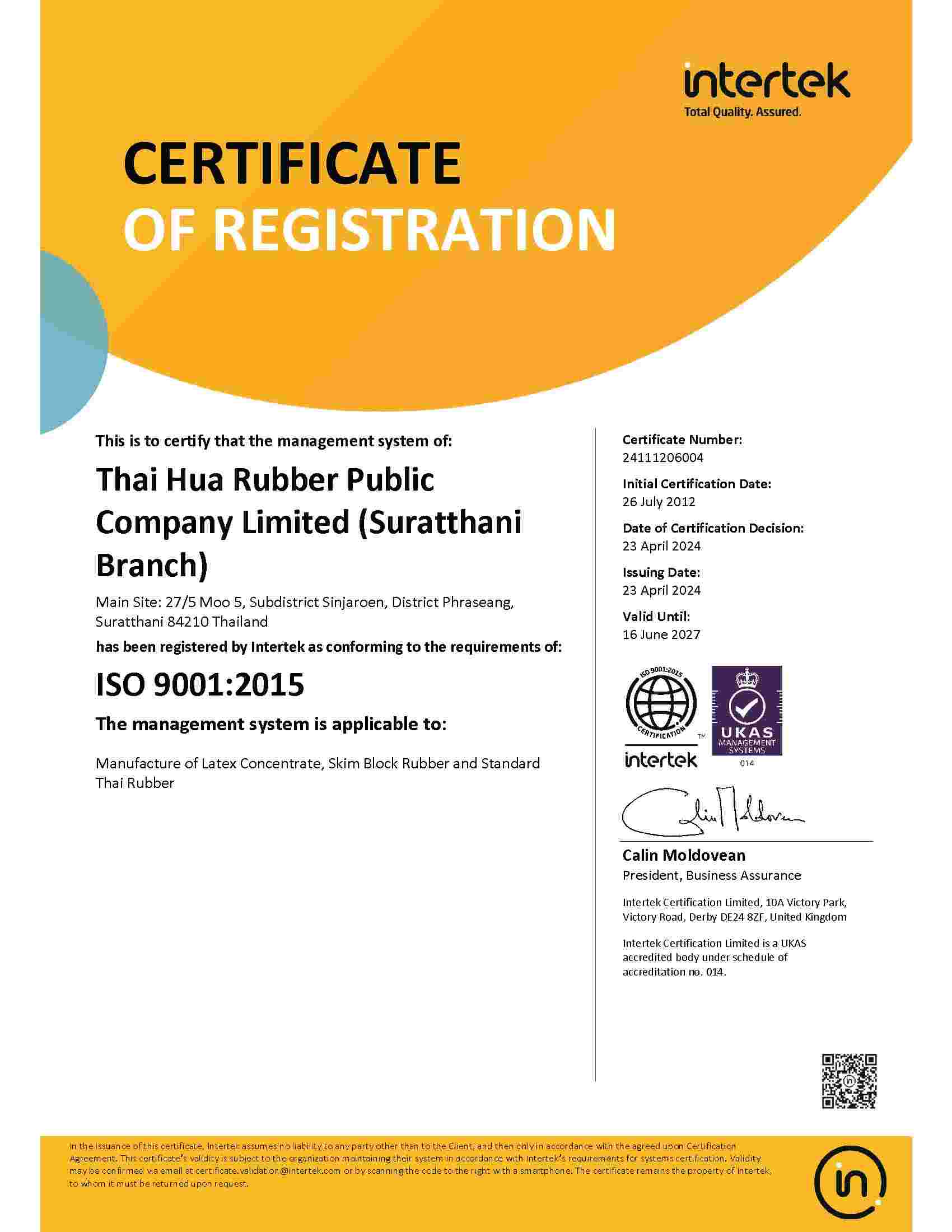 | LAT | Surat Thani(ISO 9001:2015) | BN4 | 16/06/2027 | View | |
