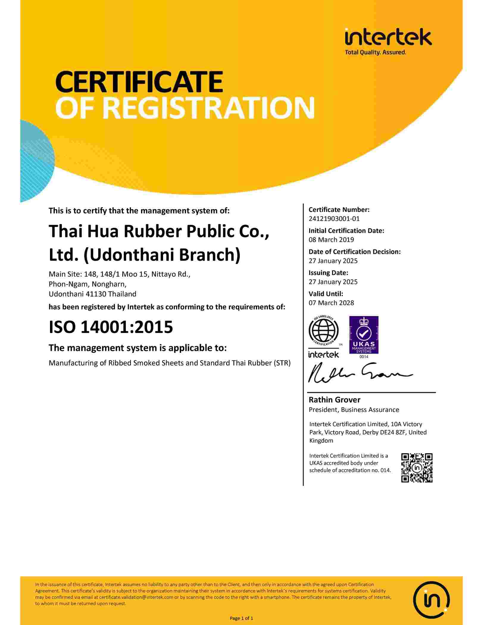 | RSS | Udon Thani(ISO 14001:2015) | UT | 07/03/2028 | View | |
