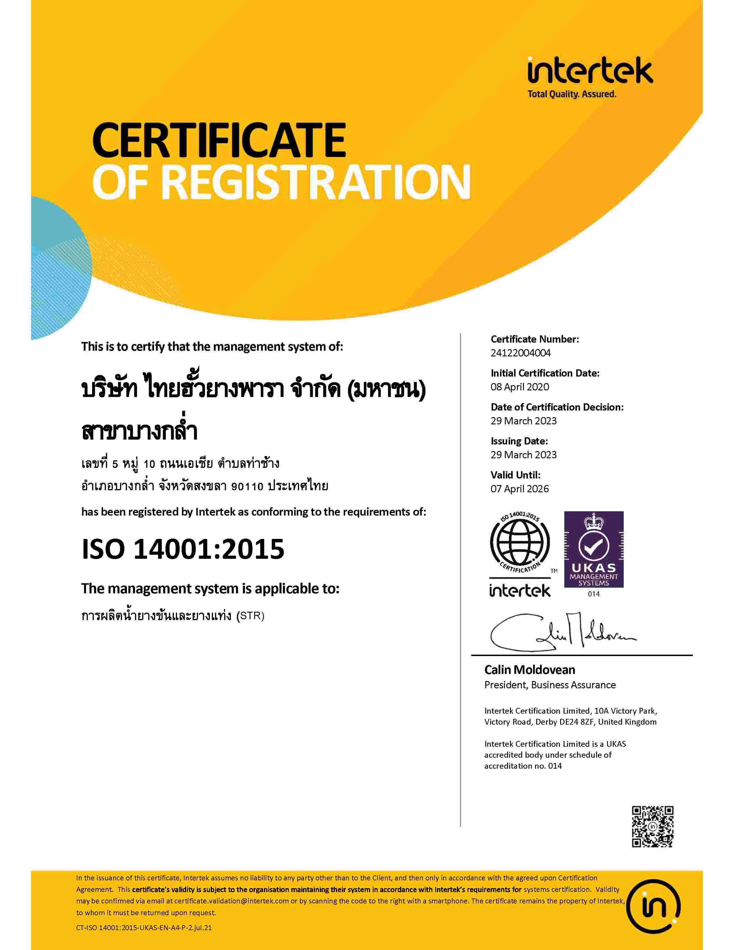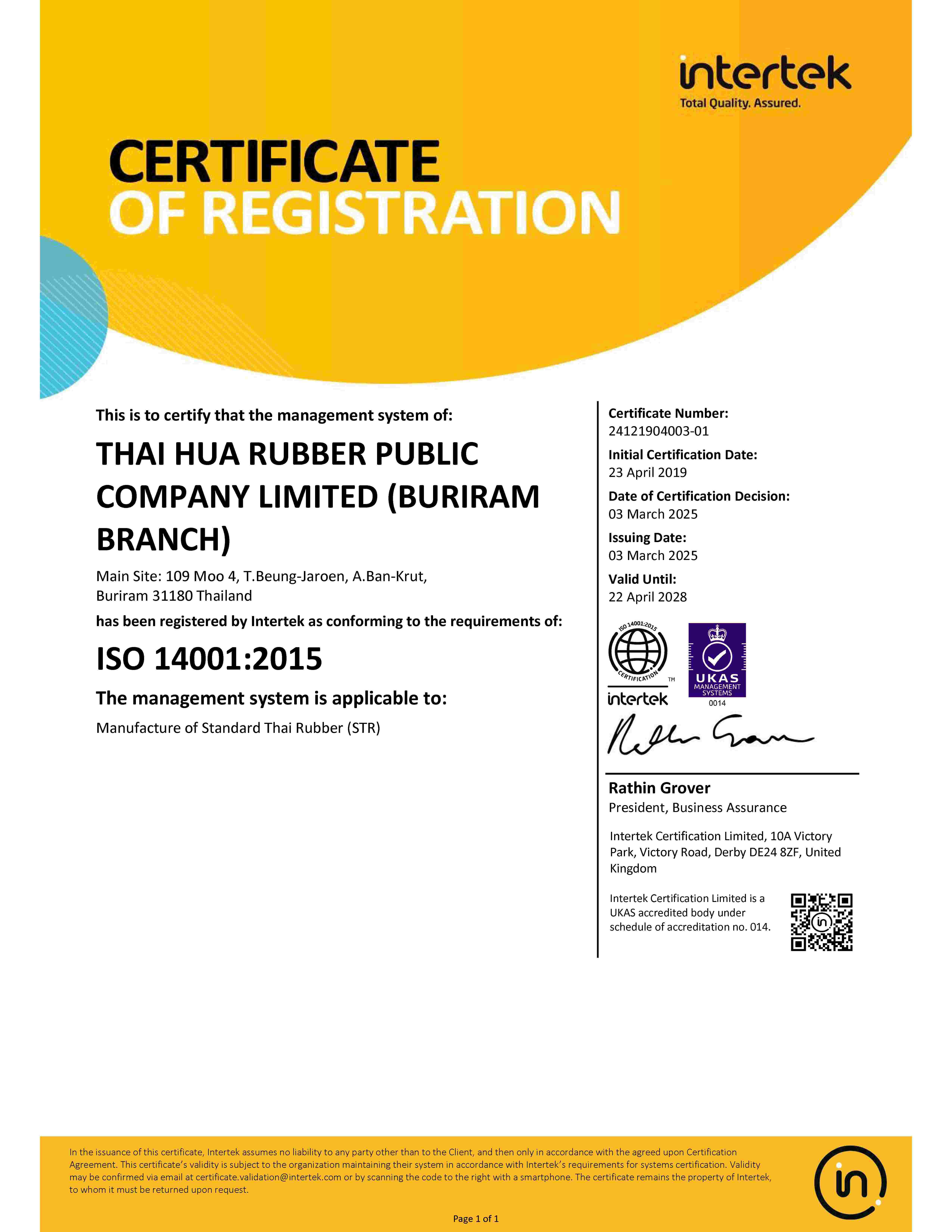| STR | Chalung(ISO 14001:2015) | BN | 07/10/2028 | View |