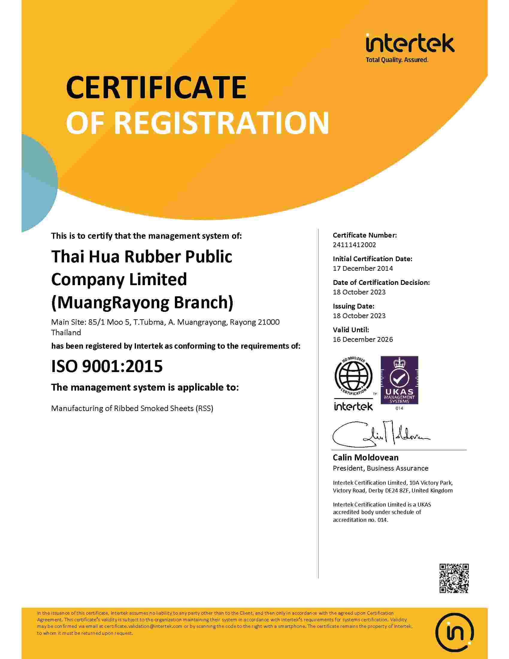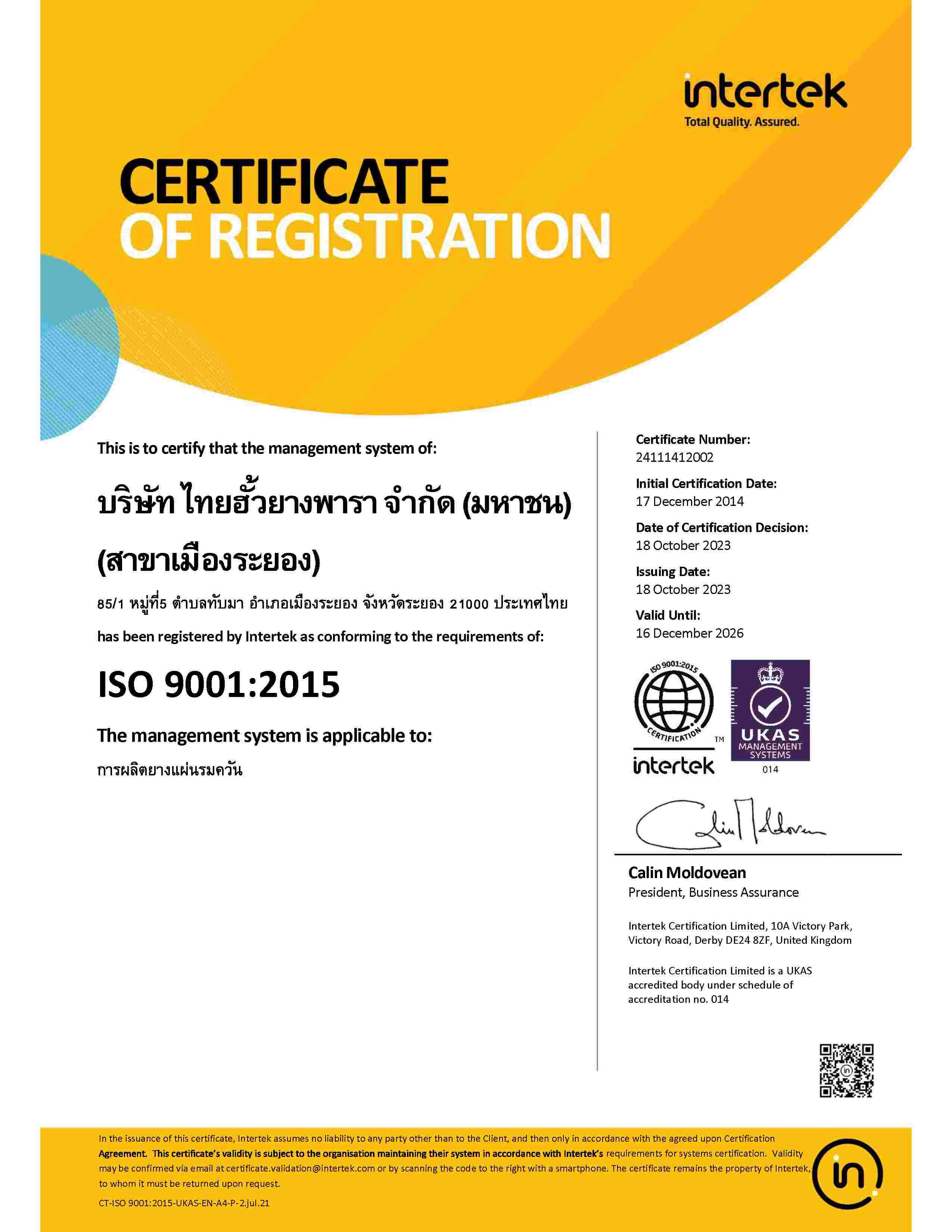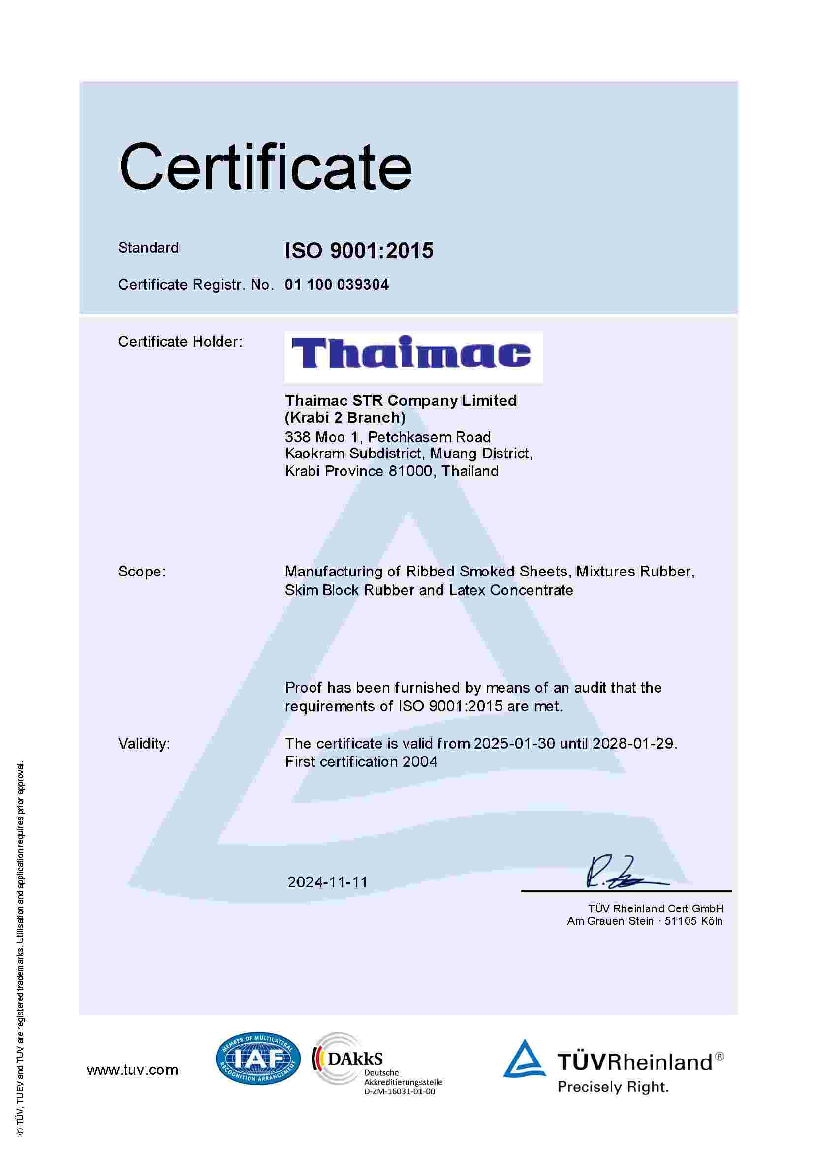 | LAT | ThaiMac (Krabi 2) Latex (ISO 9001:2015) | KL | 29/01/2028 | View | |