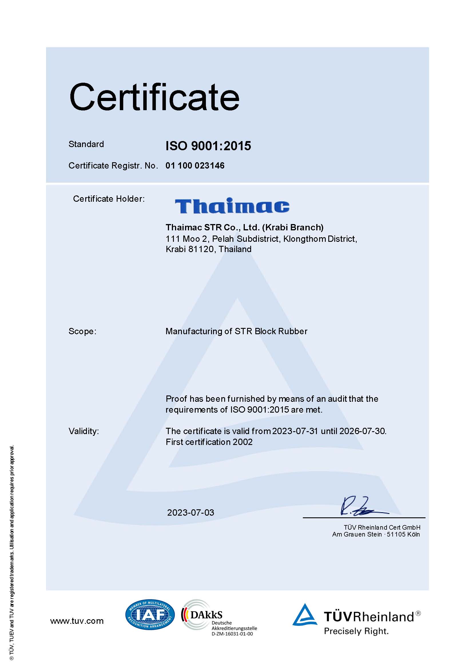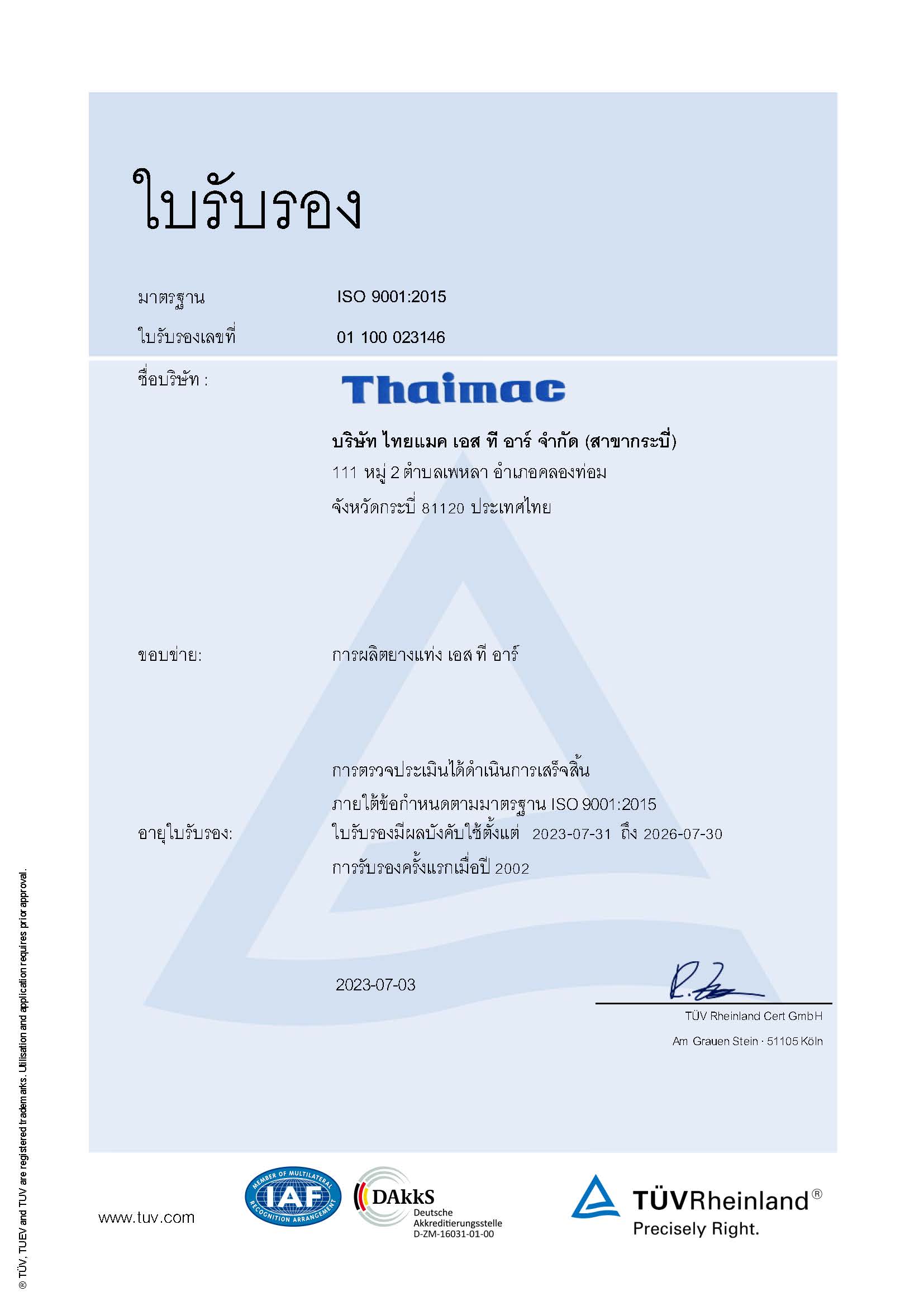 | STR | ThaiMac(ISO 9001:2015) | BS | 30/07/2026 | View | View |
