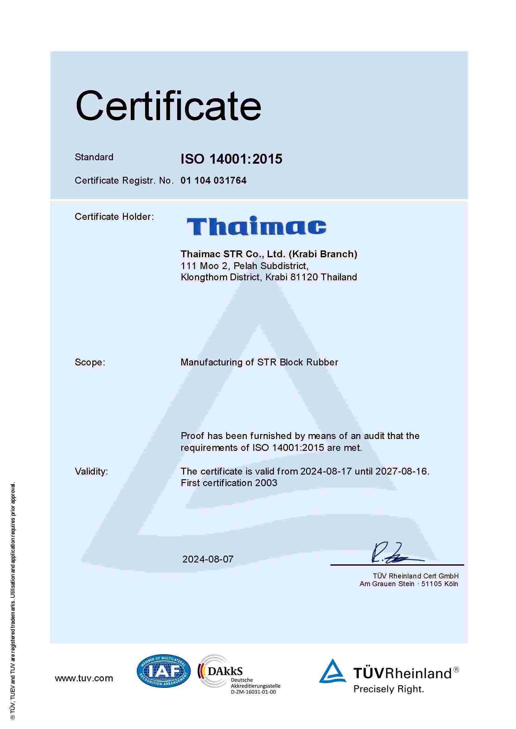 | RSS | ThaiMac (Krabi 2)(ISO 14001:2015) | KL | 31/07/2026 | View | View |