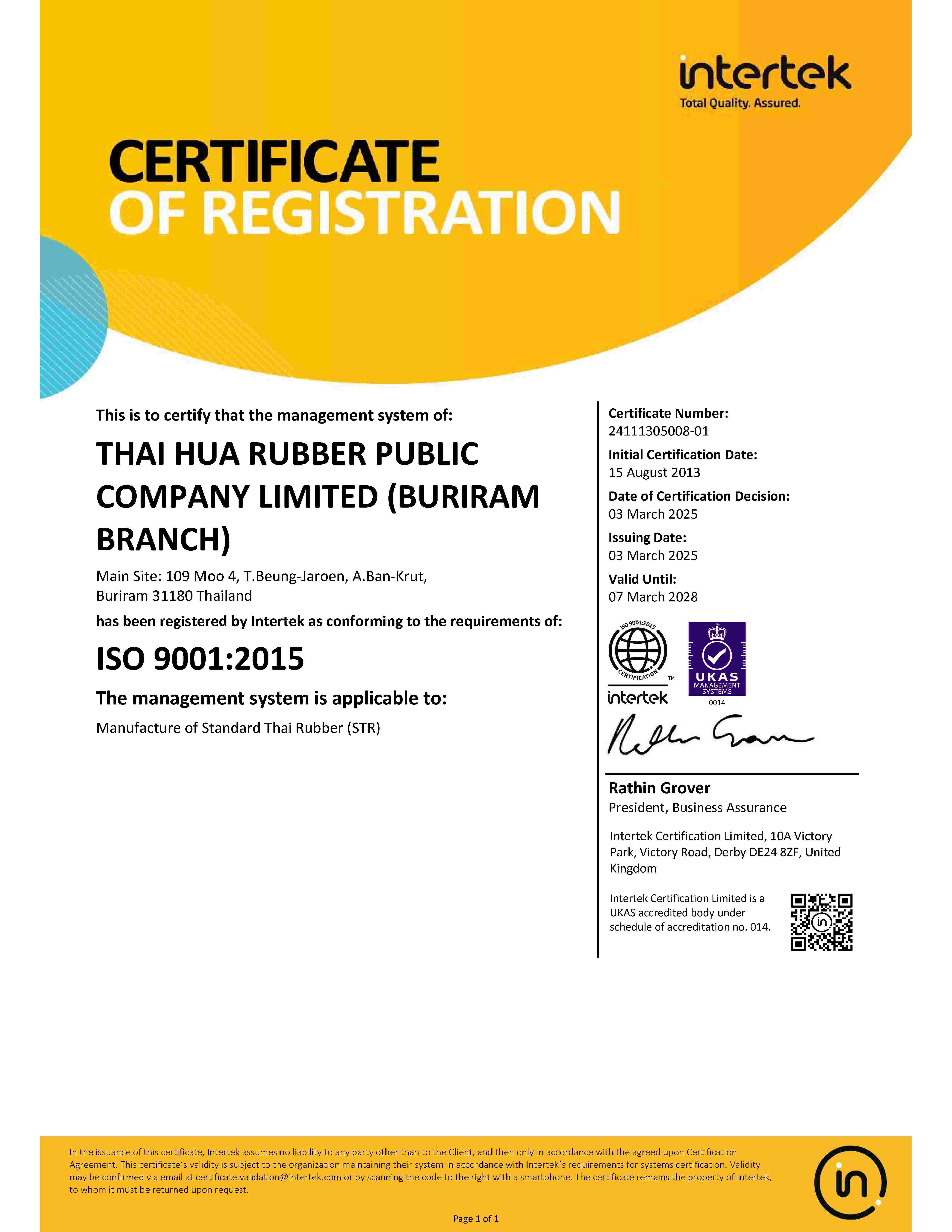 | STR | Udon Thani(ISO 9001:2015) | CR | 26/02/2028 | ||