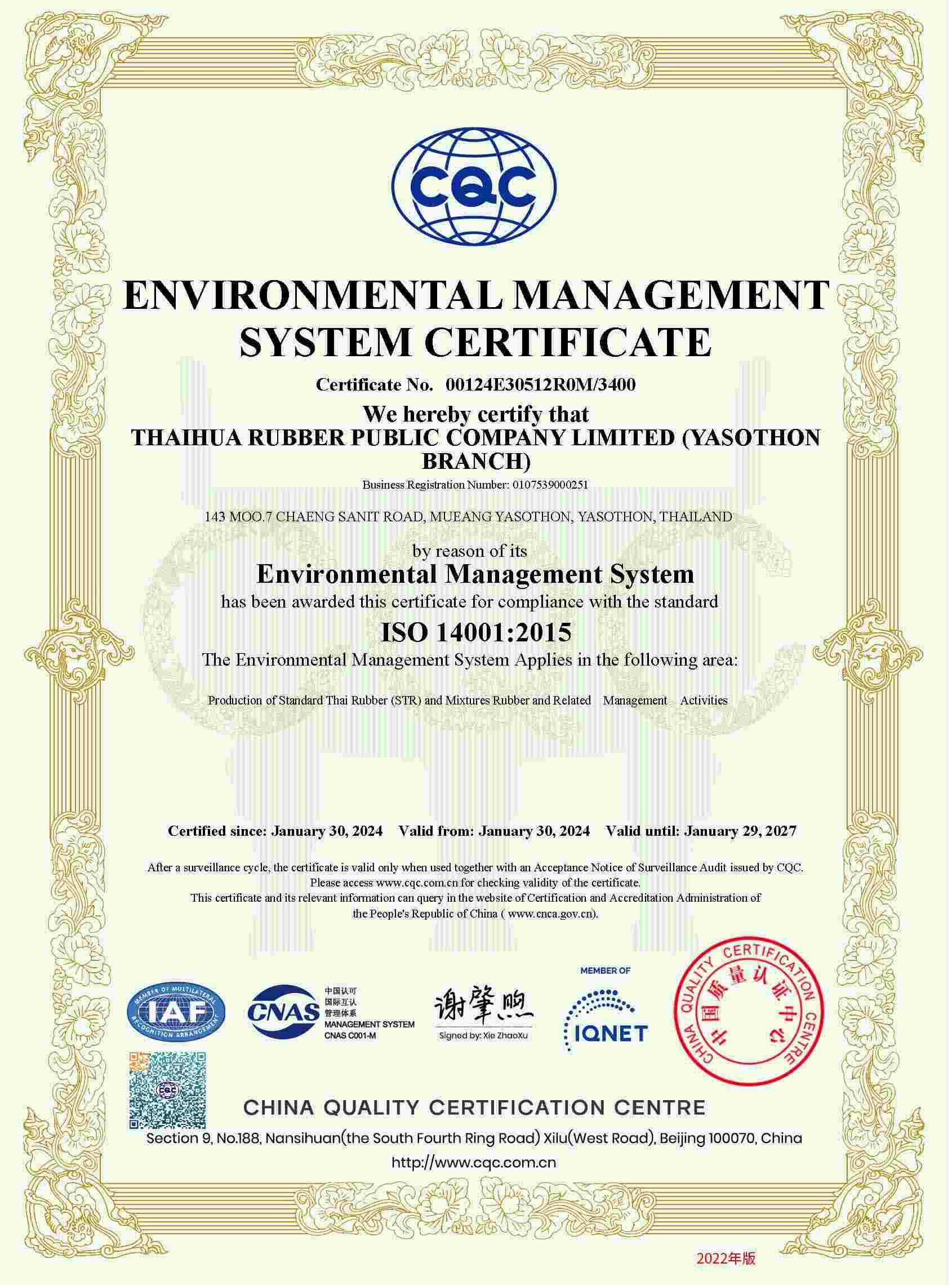 | STR | Yasothon(ISO 14001:2015) | BN3 | 29/01/2027 | View | |